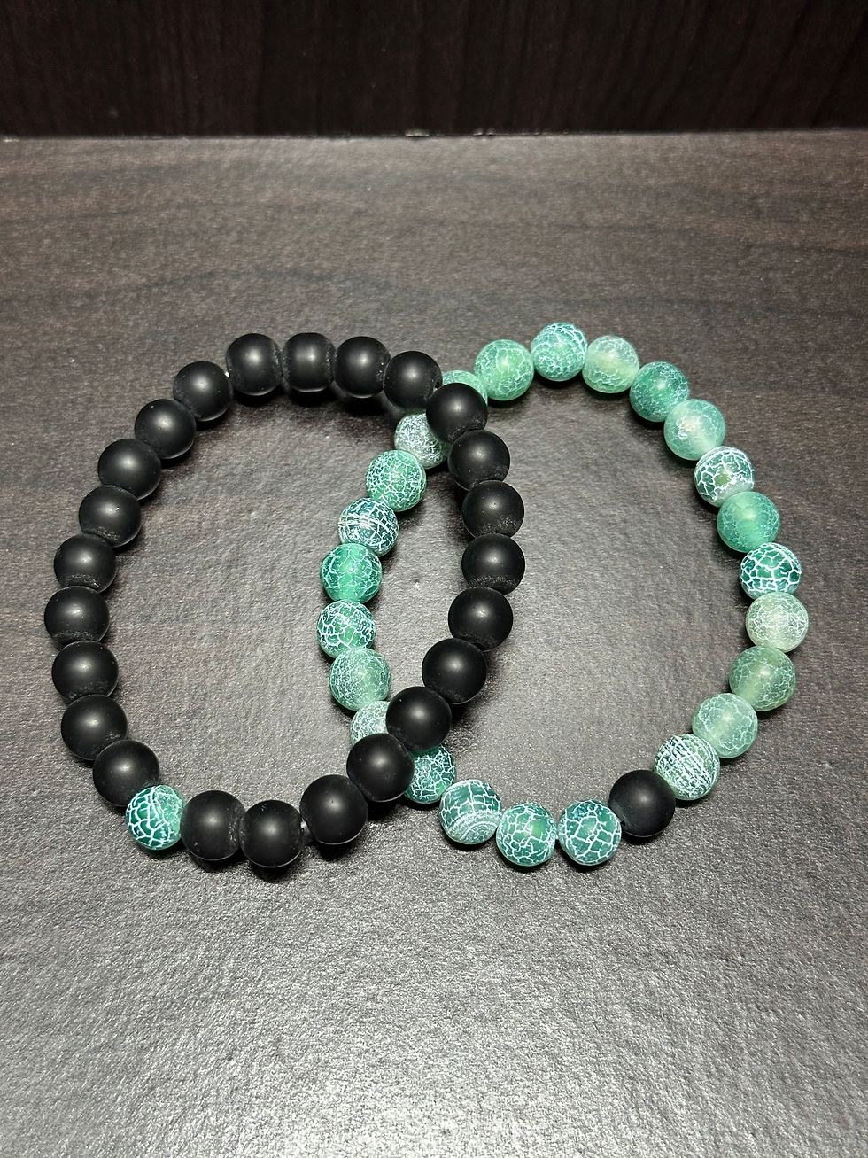 Stone Fashion Bracelet Himalayan & Black Volcanic Agate Set